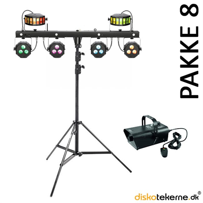 Få noget for pengene med denne lys pakke med masser af diskolys. Pakken indeholder en Cameo fx lys bar med 4 led lamper, 2 led